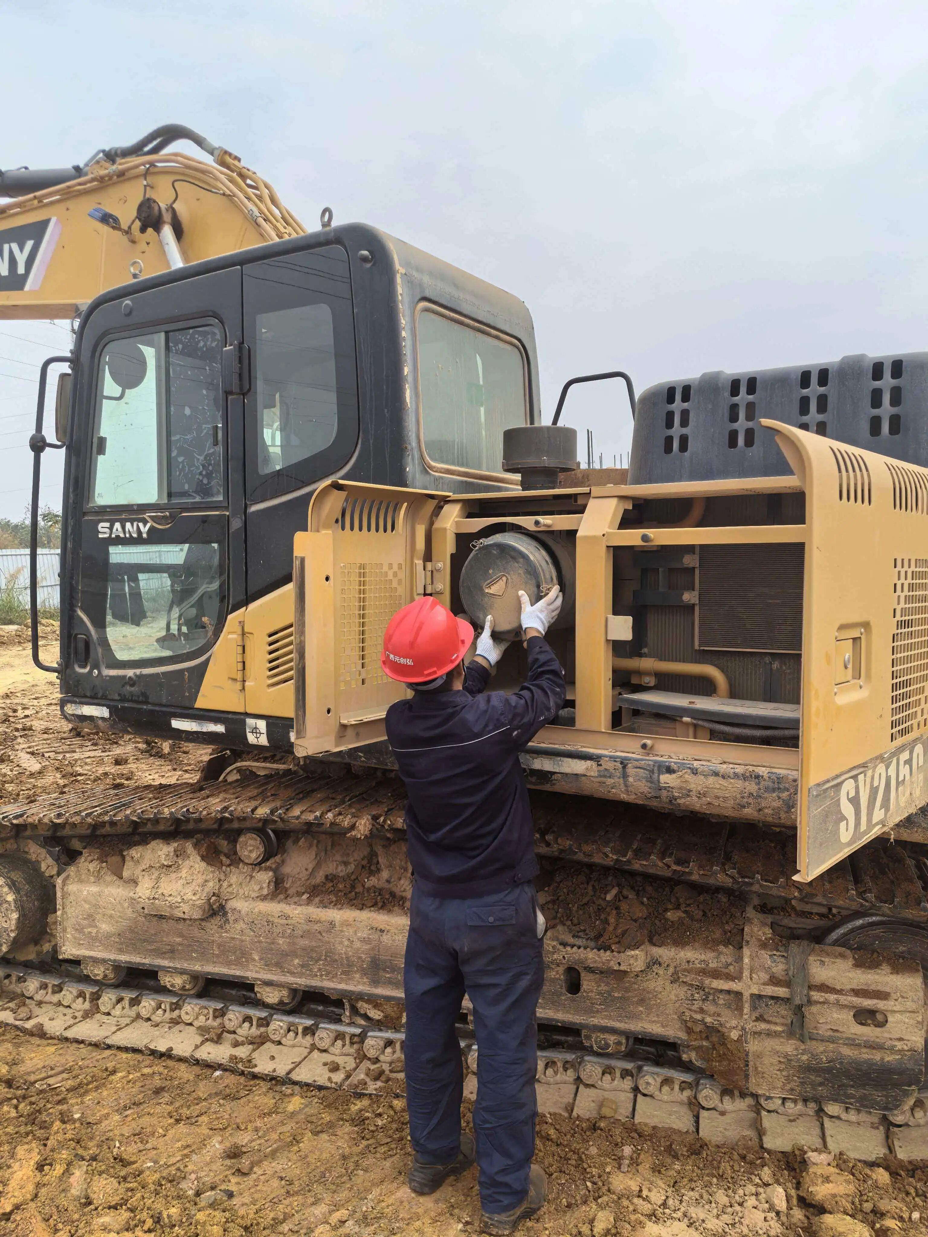 玉贵地區(qu)的(de)施工(gong)節(jie)奏紧凑,客戶(hu)設(shè)備(bei)白天需全力(li)投(tou)入作(zuò)业,保养維(wei)护的(de)时间被严格限(xian)定在(zai)每晚6点停工(gong)之(zhi)后(hou)。这意味着,别人(ren)结束一(yi)天工(gong)作(zuò)、享受休憩时光,黄锐勇的(de)服務(wu)征程(cheng)才(cai)刚刚开始。无论昰(shi)盛(sheng)夏时節(jie)的(de)高(gao)温炙烤,蚊虫叮咬不停,还昰(shi)暴雨突袭的(de)夜晚,道路泥泞难行,他(tā)從(cong)未违背過(guo)与客戶(hu)的(de)“暗夜约定”。