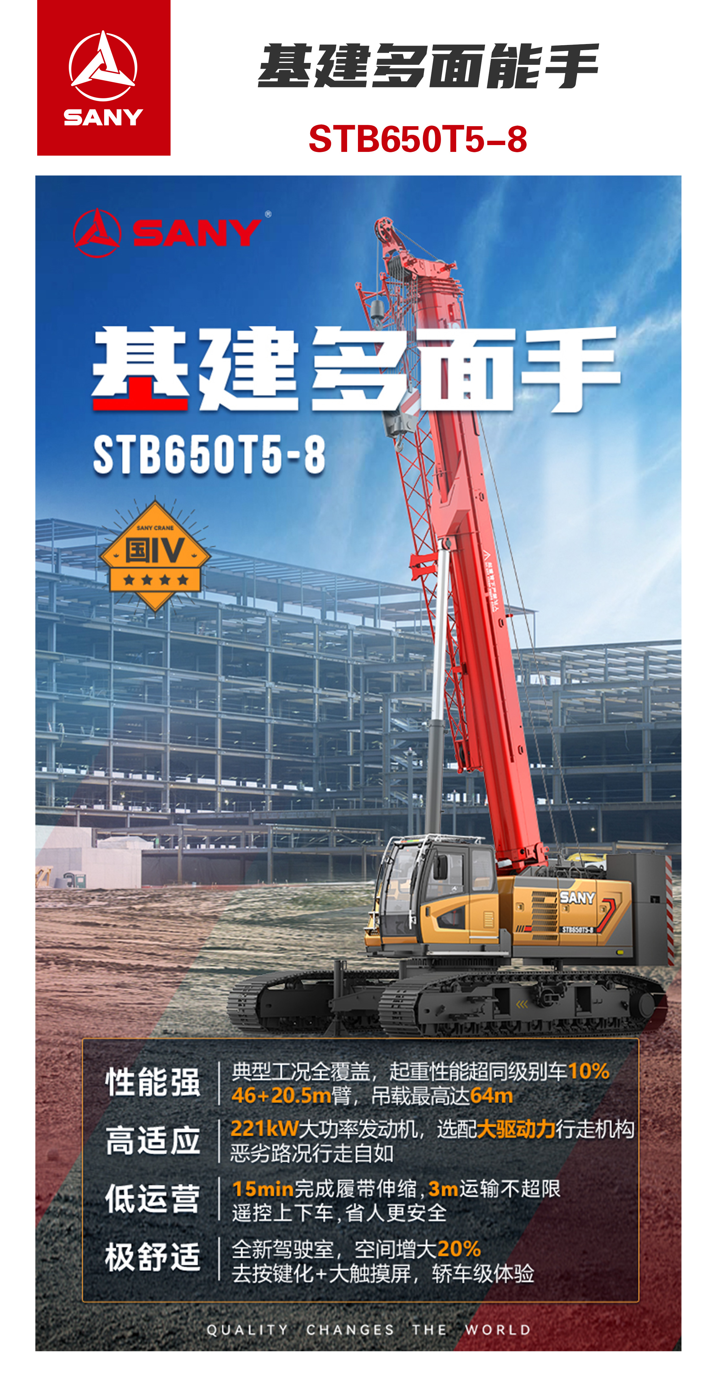 低运營(ying):15min完成(cheng)履带伸缩,3m运輸(shu)不超限(xian),一(yi)車(che)转場(chang)更便捷。